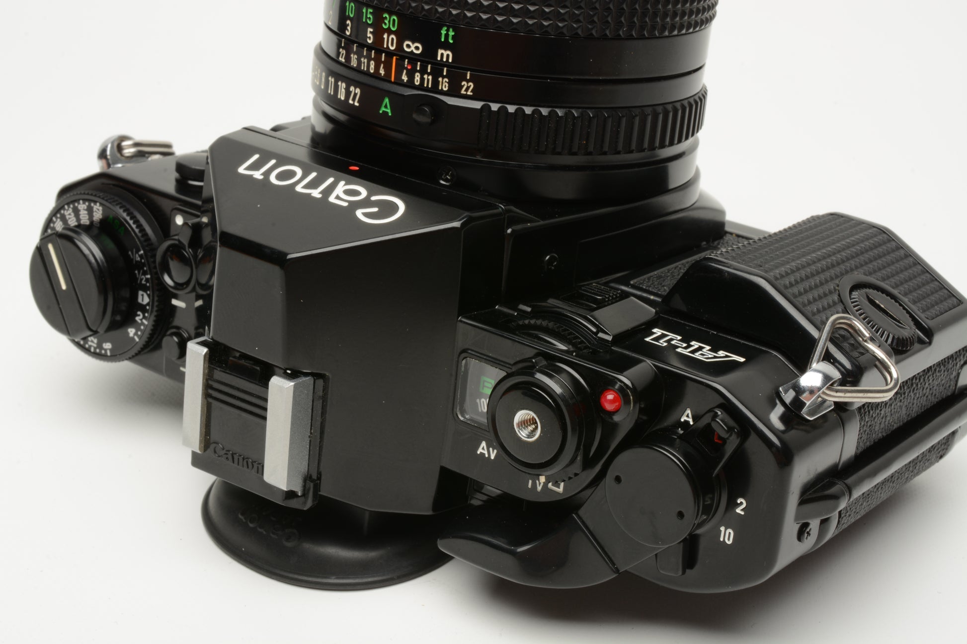 Includes Canon thin strap, Canon UV filter, Canon 1980 Olympics lens cap, new light seals, and rubber eyecup + 24" red nice quality cable release. Also includes side mini grip and hot shoe cover