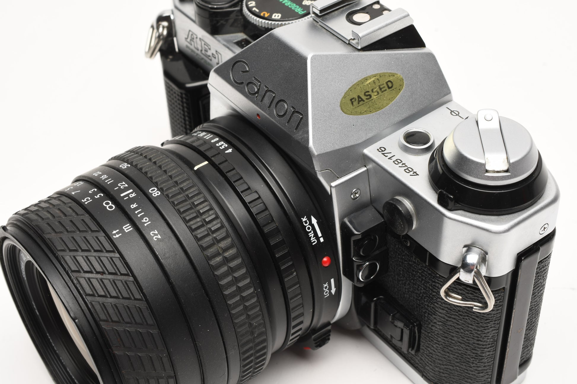 Canon AE-1 Program 35mm SLR Camera w/Sigma 35-80mm Zoom, New Seals