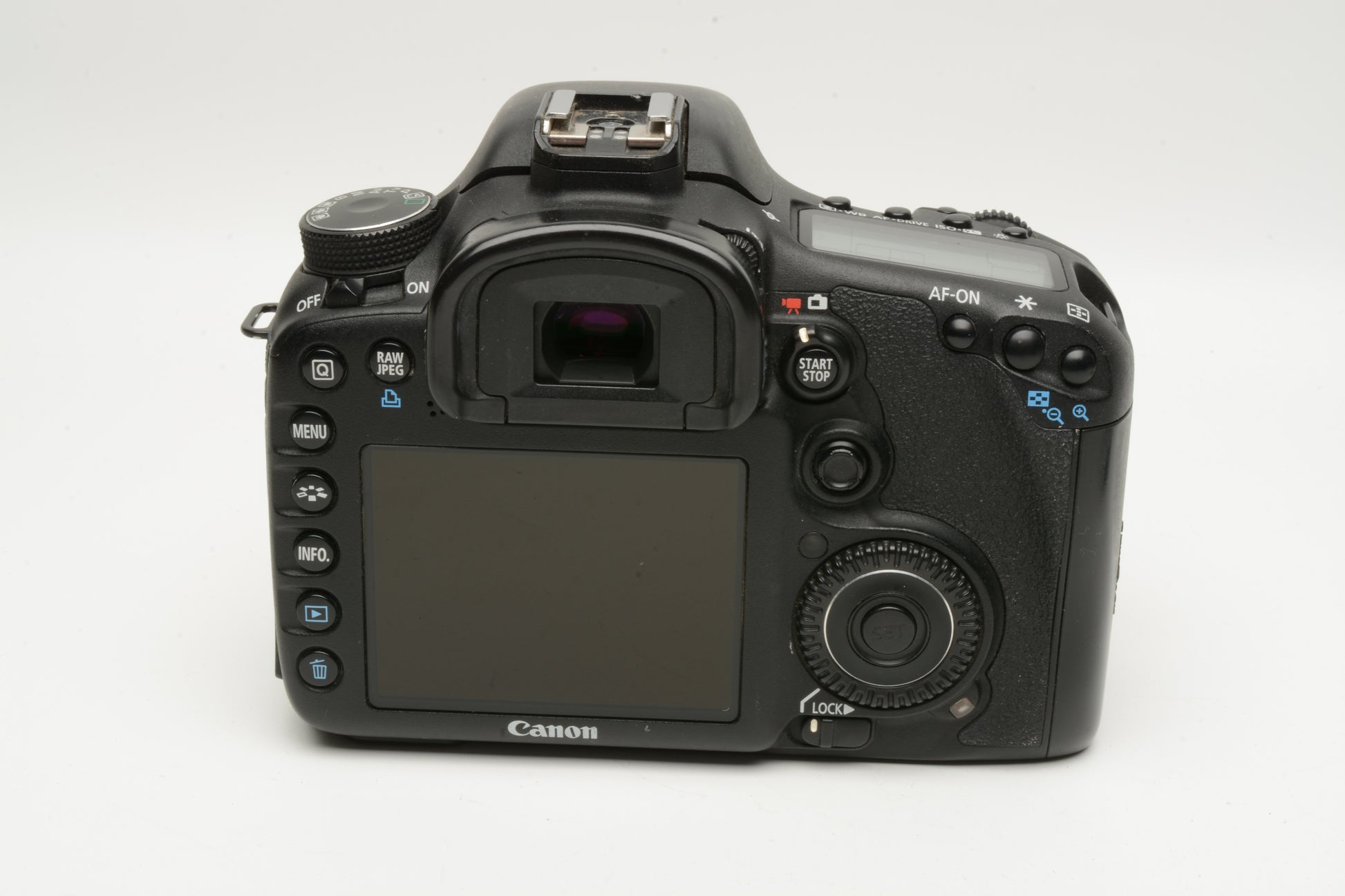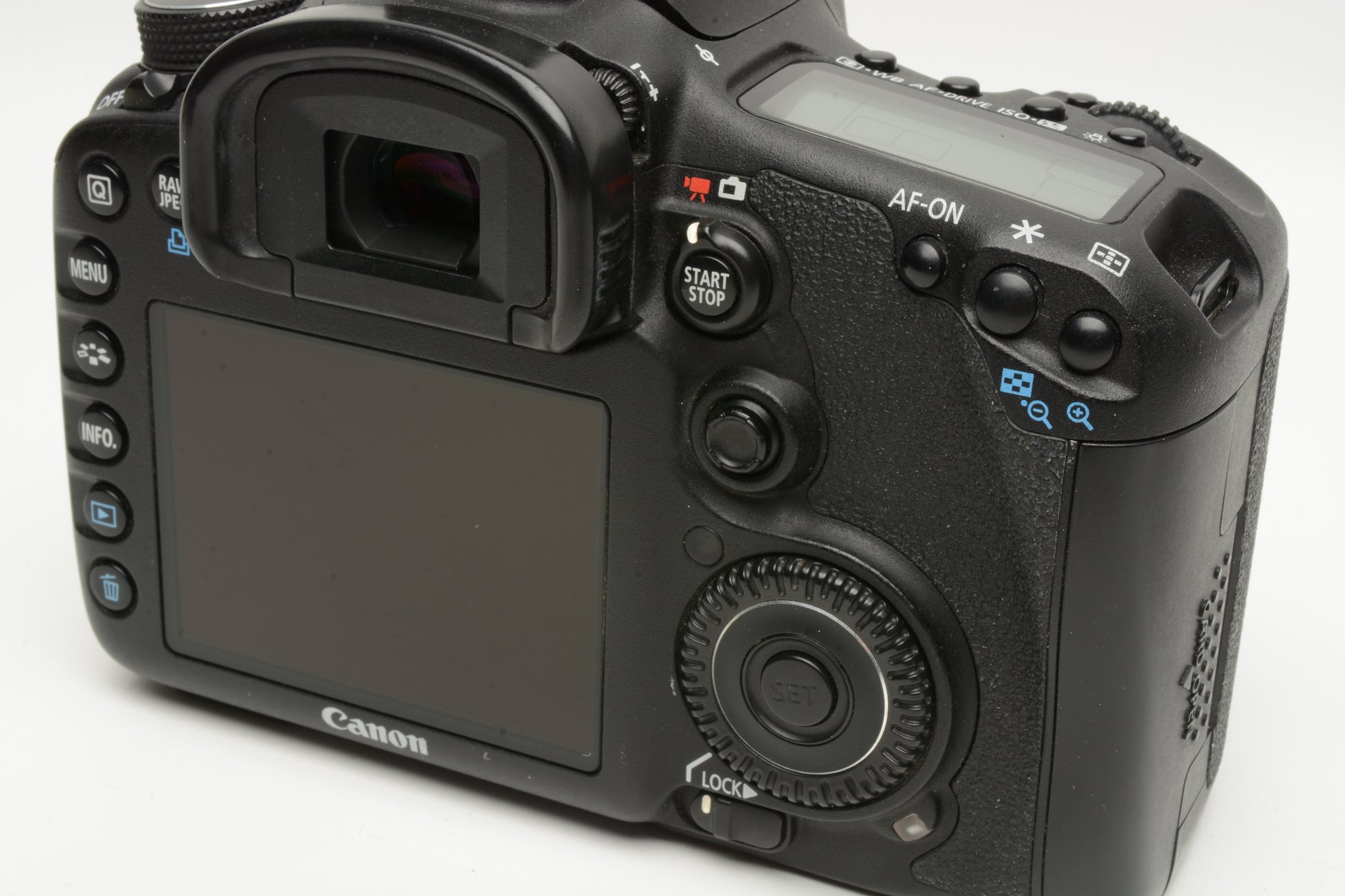 Includes Canon battery, charger, rubber eyepiece and body cap + clean wide strap