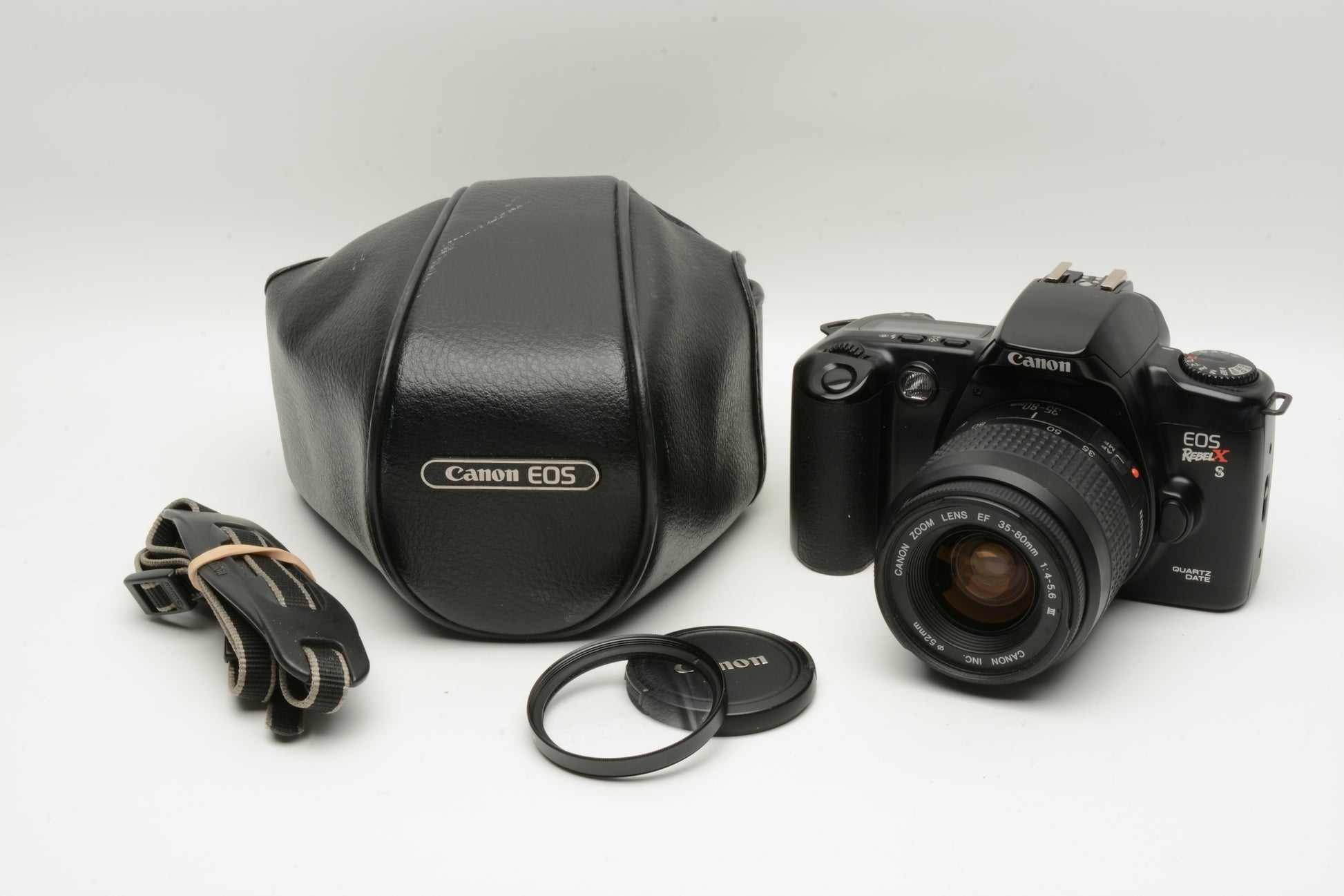 Canon EOS Rebel XS QD 35mm SLR w/EF 35-80mm F4-5.6 III, UV, Case, Tested