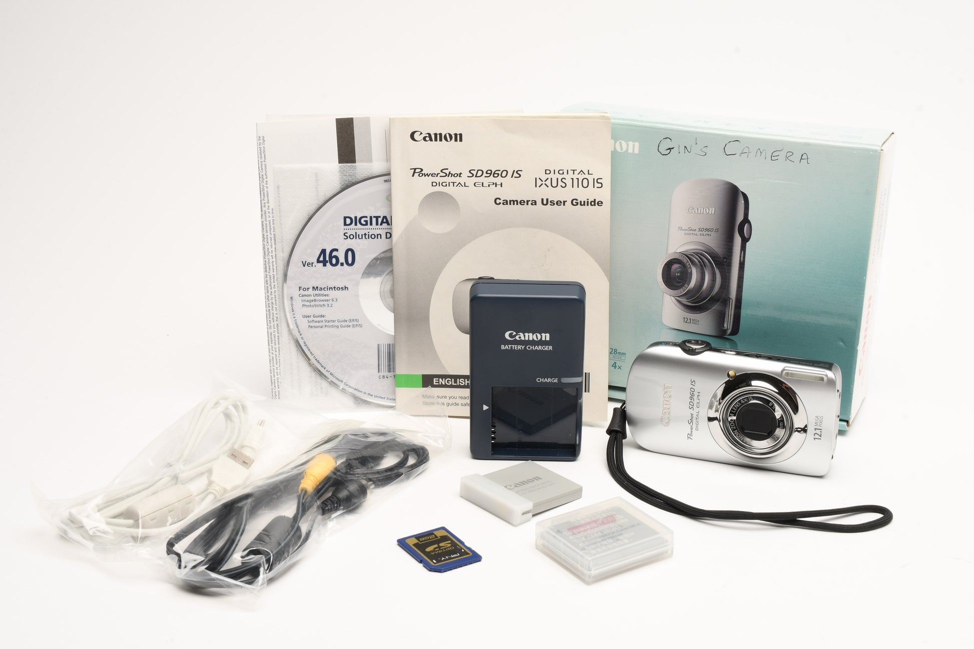 Includes 2X batteries, charger, wrist strap, 2GB SD card, AV+USB cables and all instruction manuals
