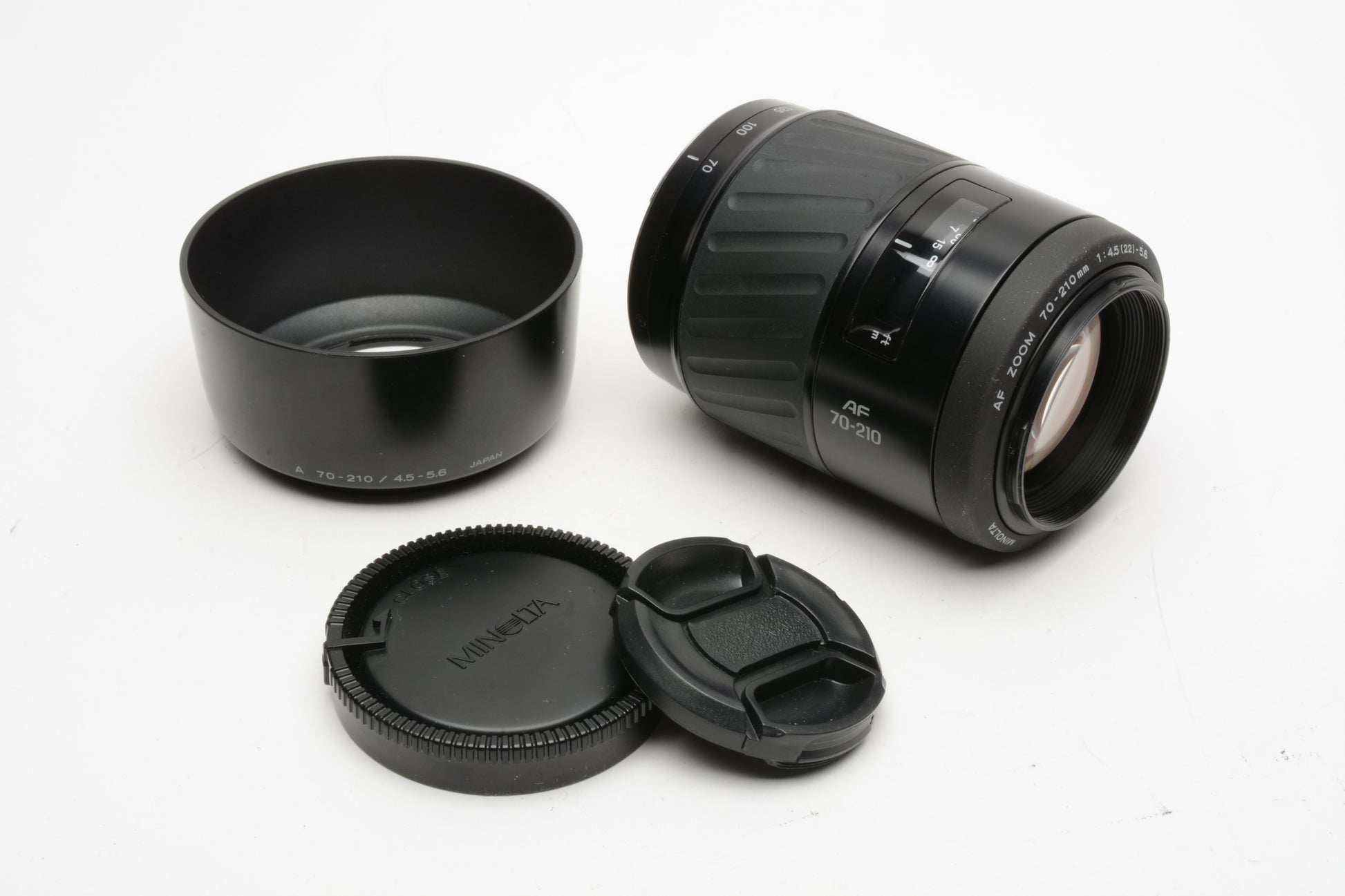 Minolta Maxxum AF Zoom 70-210mm f4.5-5.6 lens, caps, hood, nice & clean