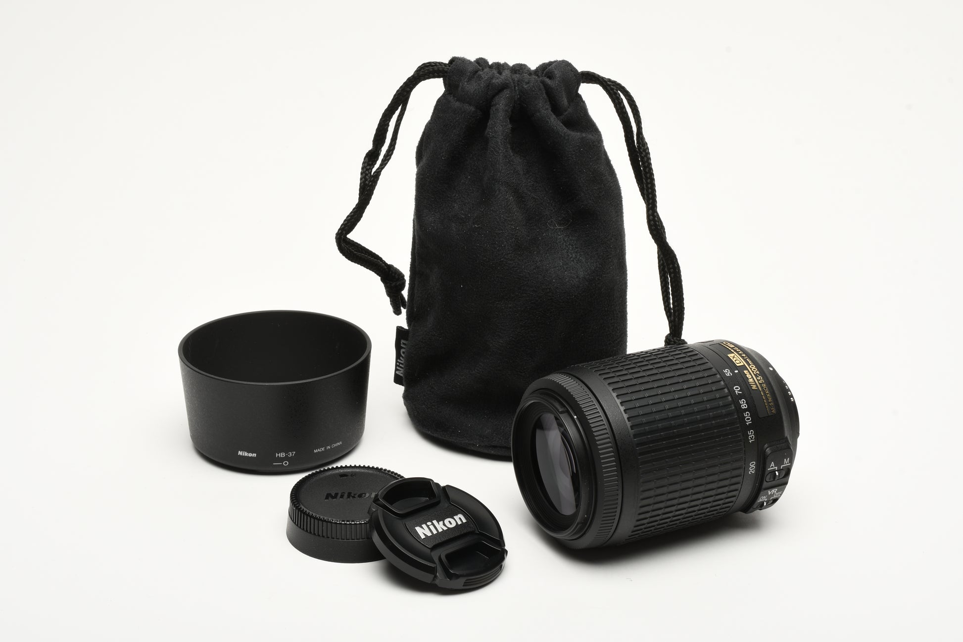 Nikon AF-S 55-200mm f4-5.6G ED VR DX, Hood, Caps, Pouch, Mint-