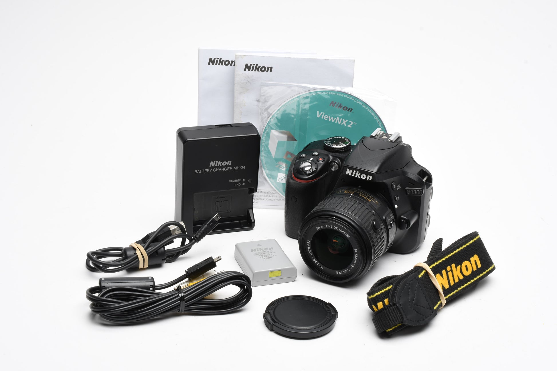 Nikon D3300 DSLR w/18-55mm zoom Batt, charger, strap, Only 9092 Acts
