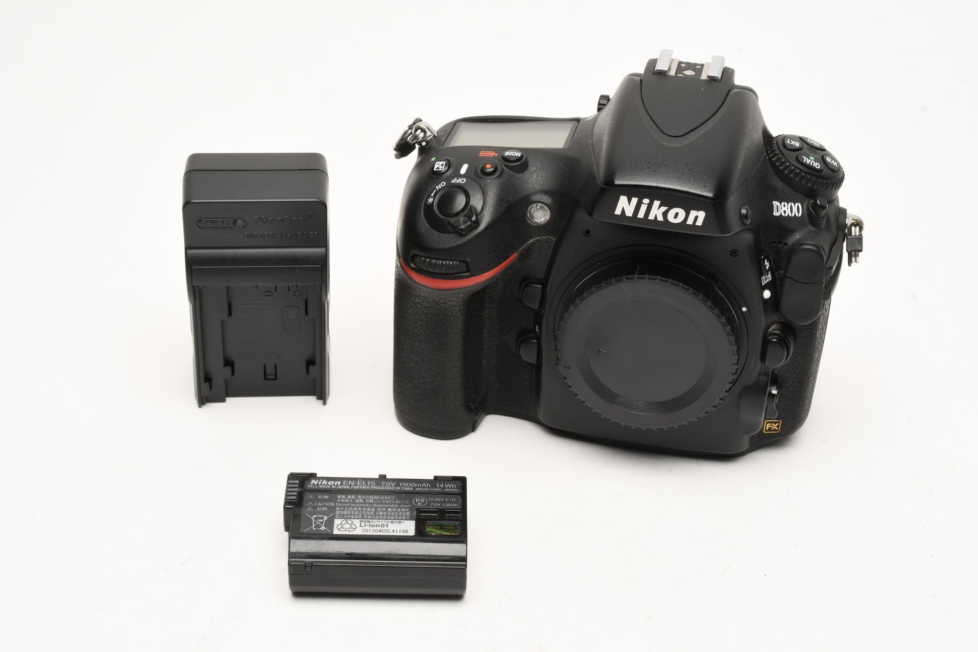 Includes Nikon battery, charger, and body cap