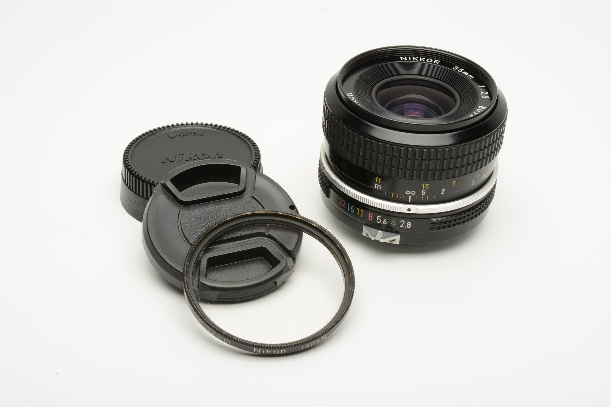 Nikon Nikkor 35mm f2.8 Non-AI mount lens, caps, nice & clean + L39 Filter