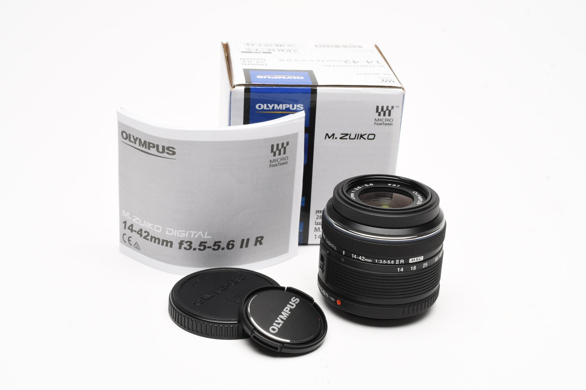 Olympus 14-42mm f3.5-5.6 II R MSC lens, Hood, Mint-, Micro 4/3 Boxed