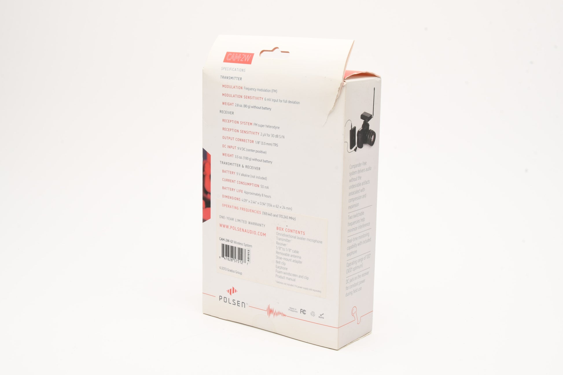 Polsen CAM-2W Camera-Mountable VHF Wireless Mic, FM, G1, NIB
