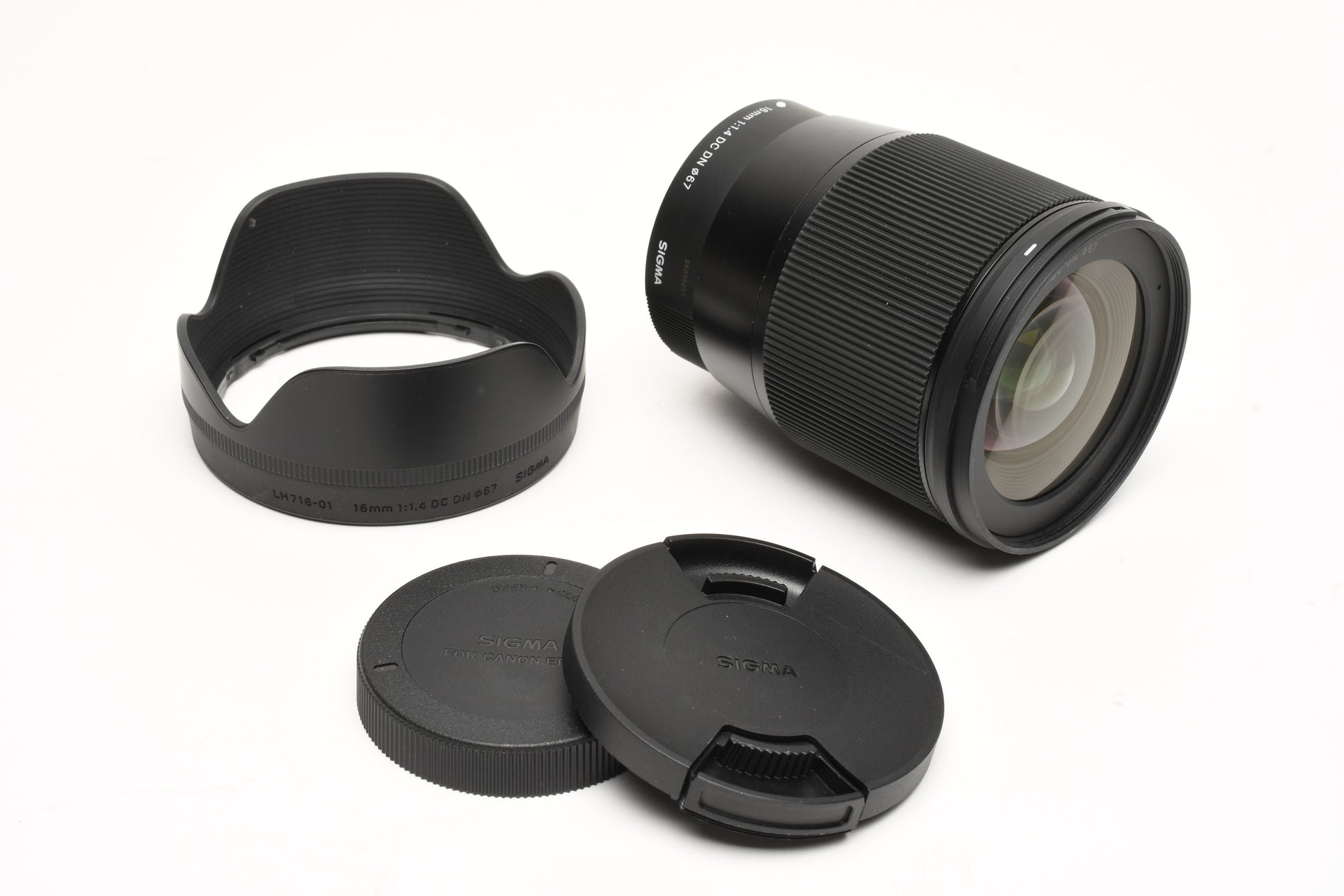 Sigma 16mm 1.4 DC Canon EF-M lens, very clean, w/hood+caps
