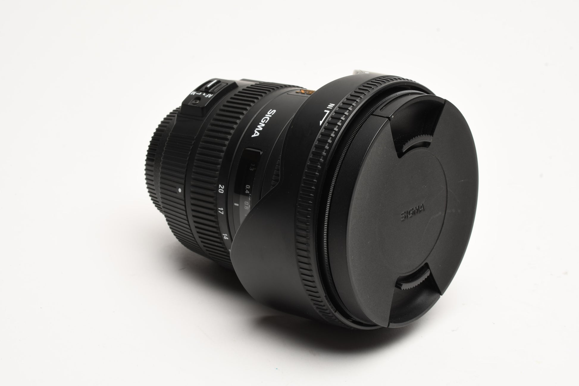 Sigma AF 10-20mm f3.5 DC HSM wide zoom lens Nikon Hood, caps, UV, case Mint-