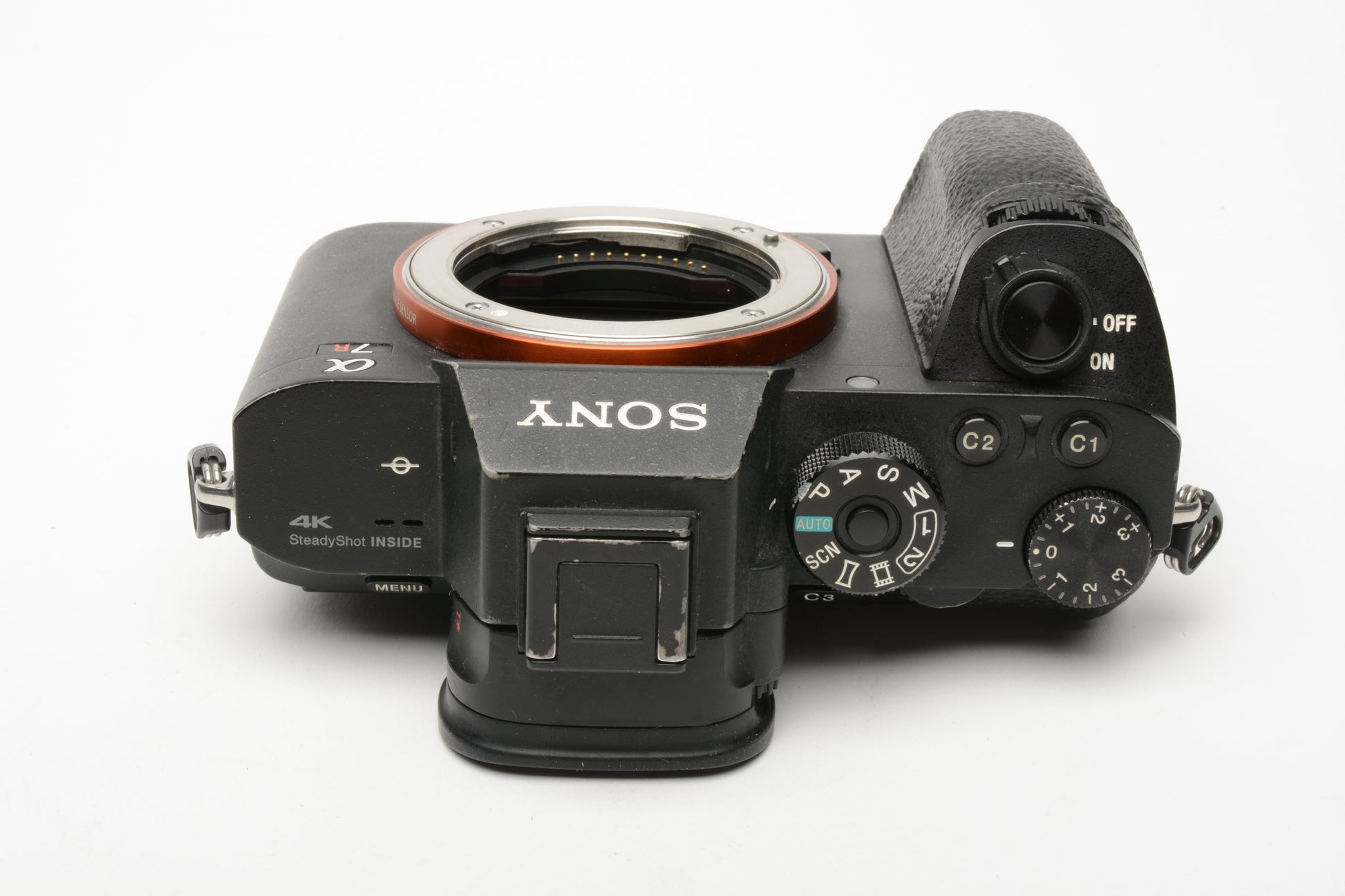 - Cosmetically shows moderate signs of use on camera body - light marks or scratches at strap lug edges, flash shoe mount, and bottom plate edges, all else is very clean