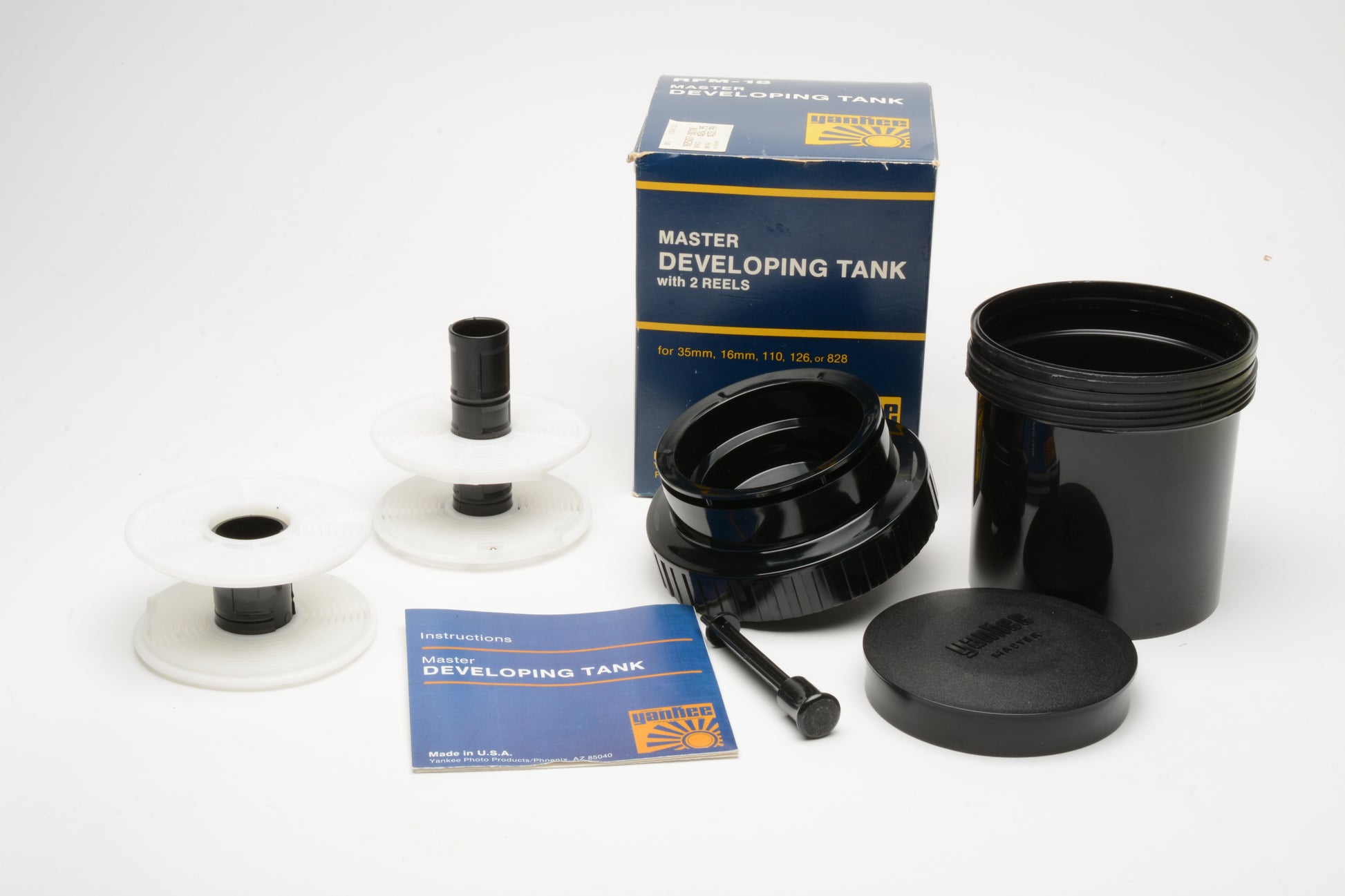 Yankee Master RFM-18 35mm darkroom film developing tank with 2 35mm/120 expanding Reels